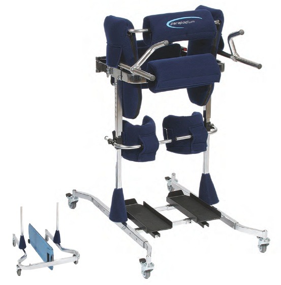 w pełni dopasowane do indywidualnych wymiarów pacjenta, dzięki unikalnemu zakresowi regulacji, stabilna konstrukcja, w której wykorzystano sprawdzone rozwiązania mechaniczne z Parapodium Dynamicznego, pozwala na całkowicie bezpieczne i wygodne przebywanie pacjenta w pozycji wyprostowanej, a w miarę postępu procesu rehabilitacji daje możliwość poruszania się.