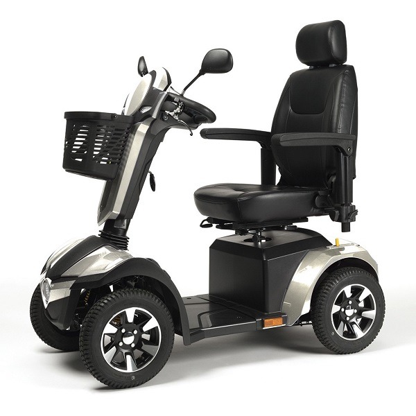 Skuter inwalidzki elektryczny Carpo 4 czterokołowy 15 km/h nowoczesny skuter w modnej kolorystyce na fantastycznych aluminiowych felgach.  Obracany fotel ułatwia wsiadanie i zsiadanie użytkownikowi.