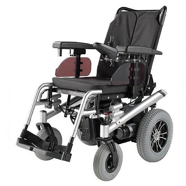 Wózek inwalidzki z nowoczesną, aluminiową ramą ze składanym oparciem. Wózek inwalidzki o napędzie elektrycznym umożliwia również regulację głębokości oraz kąta nachylenia siedziska i oparcia. Dodatkowo regulowane są również podnóżki, uchwyt na kule oraz możliwość przełożenia jednostki sterującej dla opiekuna.