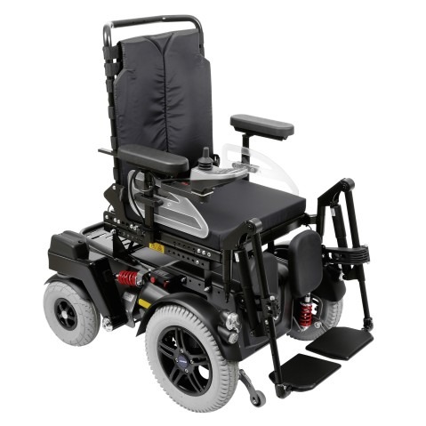 Wózek inwalidzki elektryczny Timix z napędem elektrycznym na przednie koła terenowy aktywne zawieszenie i wahacz. Konstrukcja umożliwia dopasowanie do indywidualnych potrzeb.