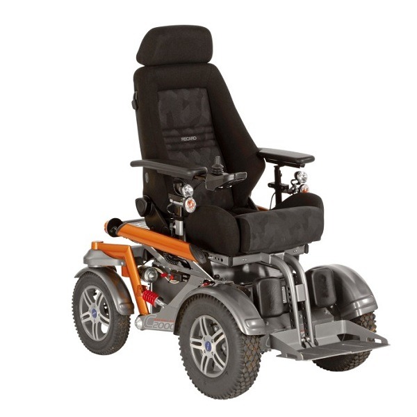 Wózek inwalidzki elektryczny Ottobock C2000 system sterowania zapewnia bezpieczeństwo przy prędkościach do 10 km / h, dostępny z przednim lub tylnym napędem. Waga użytkownika 160 kg, opcja 200 kg