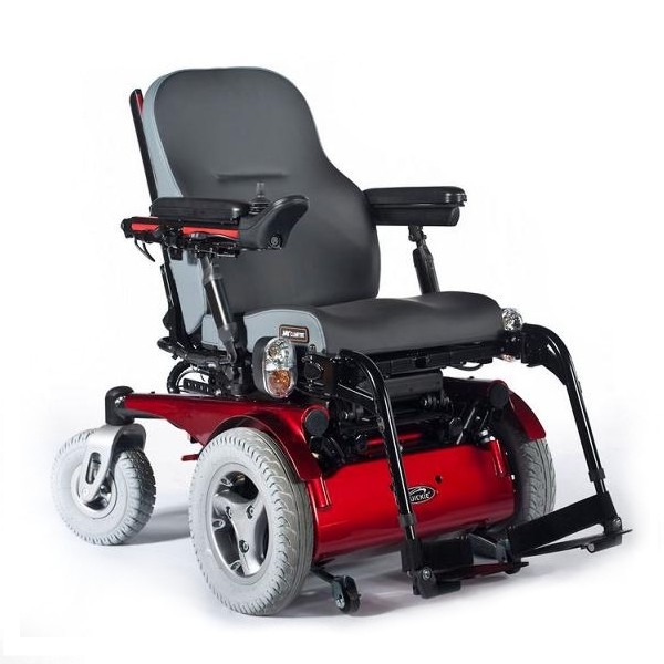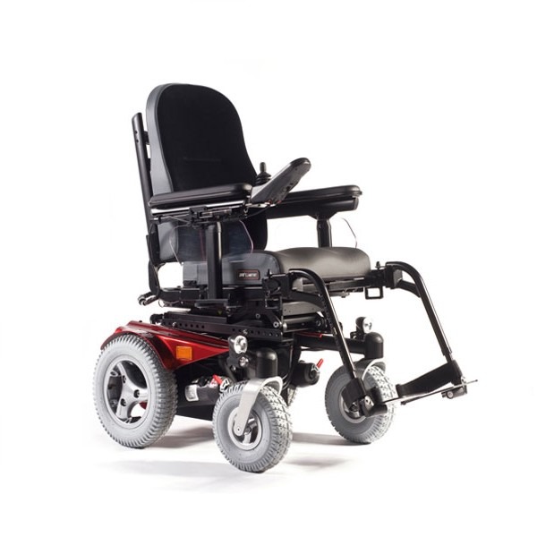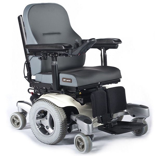 Wózek inwalidzki elektryczny Quickie Jive M z centralnie umieszczonym napędem, który oferuje użytkownikowi niezależny wybór podstaw napędowych i systemów siedziska. Prędkości do 13 km/h.