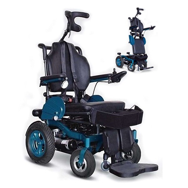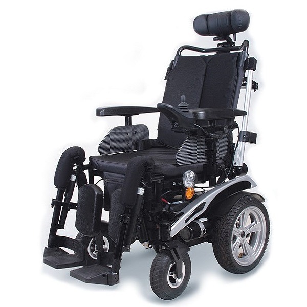 Wózek inwalidzki elektryczny Ottobock C1000SF z funkcją pionizacji. Regulacja w każdej pozycji, siedzącej i półleżącej, w tym wyprostowanie całego ciała. Waga użytkownika od 214 kg.