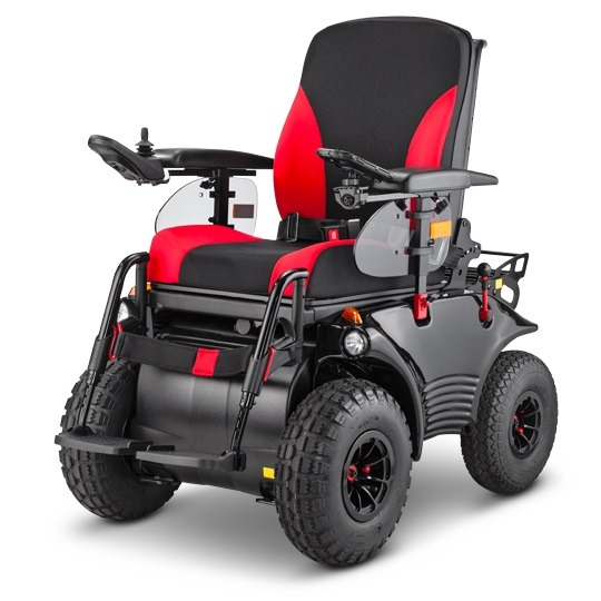 Wózek inwalidzki elektryczny Squod zaletą tego wózka są niewątpliwie ogromne przednie koła 300mm. Bezobsługowe baterie gwarantują długą żywotność oraz dają się w łatwy sposób demontować