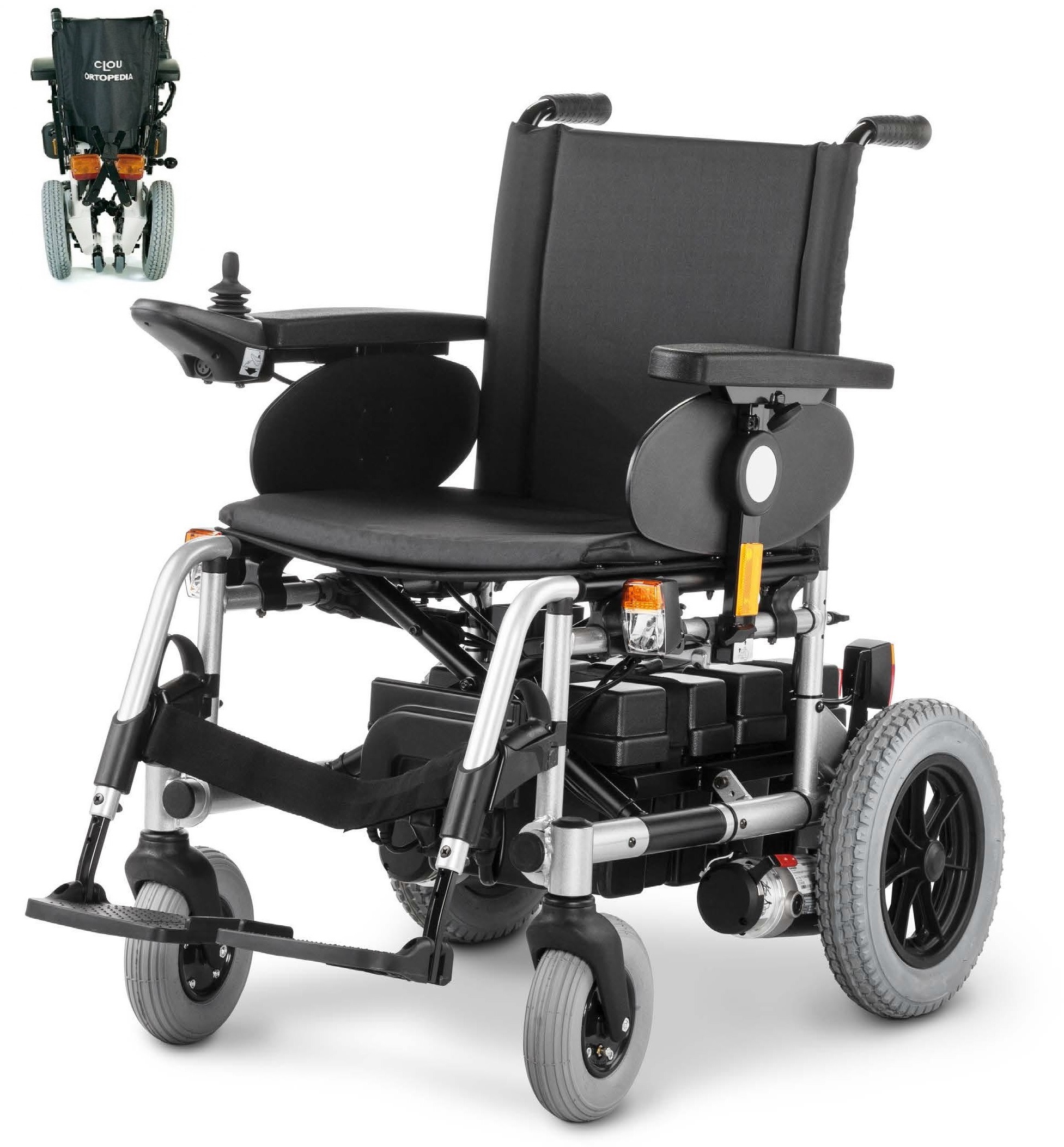 Wózek inwalidzki elektryczny Meyra CLOU składany krzyżakowo, prędkość 6 km/h, koła przednie 200×50, koła tylne 12’’. Maksymalna waga użytkownika (kg) 120. Prędkość (km/h) 6.